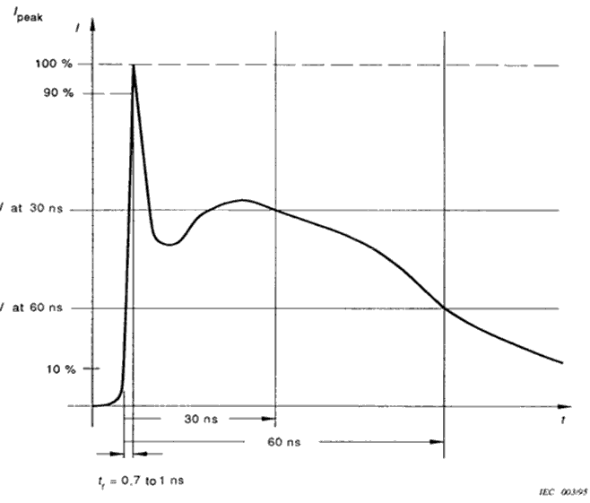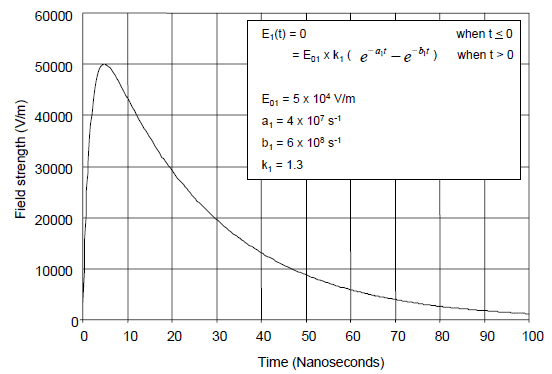 | IEC - 61000-2-9 (1996) | 50 kV/m | 4 x 107 s-1 | 6 x 108 s-1 | 1.3 |